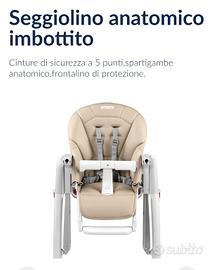 Seggiolone pappa che si trasforma in sdraietta, estremamente stabile e richiudibile. seduta in ecopelle morbida e facile da pulire