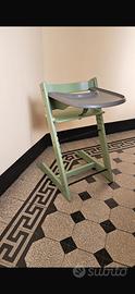 Seggiolone Stokke modello Tripp Trapp completo di vassoio. Molto bello perché segue la creatura nella crescita fino a diventare una normale sedia. Normali segni di usura (ad esempio vedi foto) ma in ottime condizioni per un altro giro!