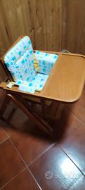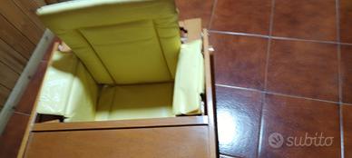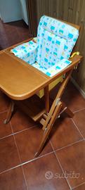 Vendo seggiolone foppapedretti Vintage, in ottimo stato in legno, con cuscino plastificato double face, da seggiolone diventa basso sedia, misure :altezza 72/95,larghezza 46,profondità 55,tutto in perfette condizioni