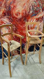 Splendidi seggioloni vintage in legno di faggio con caratteristica seduta in paglia di palude intrecciata a mano. Usati ma in ottimo stato presentano segni del tempo che ne aumentano il fascino dovuto al periodo. Prezzo trattabile. Ritiro in zona. H 99 larghezza 32