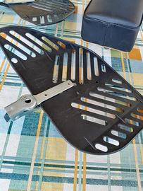 Sellino posteriore per bici con schienale,cuscino morbido e integro sulla superficie,solo piccolo difetto sul bordo. Ripari per impedire che il bambino metta i piedi in mezzo ai raggi, completi di pedaline che si possono chiudere.Buona qualità,plastica spessa.Sempre tenuto in garage.