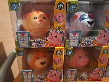 collezione completa dei sei personaggi della serie hop hop puppy giochi preziosi...è la serie go & go...cioè si muovono scodinzolano e trascinano il loro oggetto...mai aperti ..nuovi..i prezzi variano a seconda dei personaggi...da 8 a 14 euro l uno...io vendo in blocco tutti e sei a 30 euro