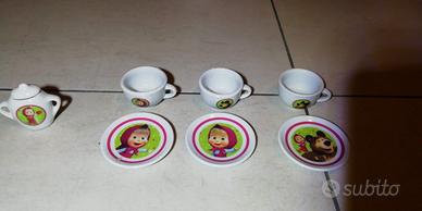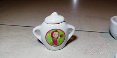 Simpatico set di tazzine e piattini in porcellana con Masha e Orso.