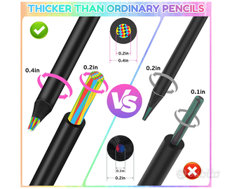 Vendo Set 12 matite arcobaleno , colorate, multicolore per effetti e sfumature varie. Nuovo con scatola . 12 matite , ogni matita crea un effetto multicolore per effetti multicolore, colori vivaci , legno della matita nero di alta qualità e con diametro di 5mm . Quindi molto larghe rispetto alle classiche matite. Design ergonomico, per una presa comoda e salda . Creano splendide sfumature, effetti e ombreggiature. Per la massima creatività. Ogni matita ha colori ed effetti diversi per poter sperimentare una bella quantità di sfumature e effetti.