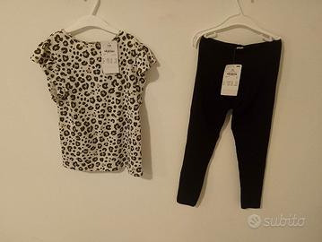 2)- Completino leggero (100% cotone) marca Takko Fashion - bambina 6/7 anni 122 cm, composto da una maglietta a maniche corte con stampa animalier e leggings neri.