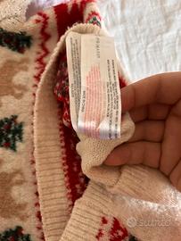 Vendo due maglioncini natalizi identici Primark, morbidissimi e caldi, con fantasia natalizia: fiocchi di neve, renne e alberelli.