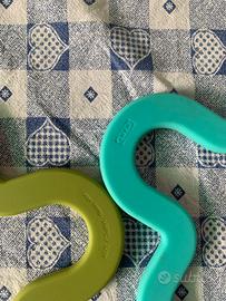 Vendo set completo di 2 sotto pentola della marca ikea colore verde e verdeacqua azzurro. I sottopentola sono utili per appoggiare la pentola calda ed evitare danneggiamenti a tovaglie e/o piano cottura. Condizioni nuove, spedisco ovunque