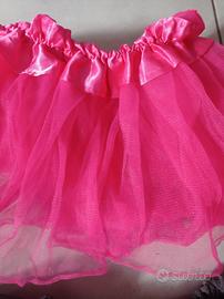 Set di due tutù per bambina, ideali per carnevale o feste. - Colore grigio con glitter. - Colore rosa acceso con dettagli in raso.