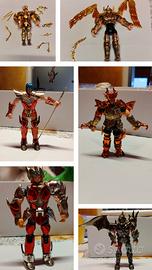 23 cavalieri dello zodiaco anni 1980 quindi non nuovi alcuni completi altri con alcuni elementi mancanti, dalle foto si può capire. I porta armature ci sono solo di alcuni come da foto, non presenti scatola. Quelli completi sono : Sirio (2), Cristal (2), Andromeda, Phoenix(2), Leone, Toro,Gemini, Pesci, Acquario, Kyra, Luxor. Bilancia (manca elmo), Andromeda argento (manca elmo), Scorpione (armatura dietro rotta), Pegaso ( manca elmo e copri coscia sx), Mizar (manca parte elmo e coprispalla), sagittario ( manca gonna e freccia), Nettuno ( manca elmo) Artex (coprispalla), Orion (manca copri coscia sx ed ala).