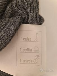 Set 3 pezzi : - Cuffia con visiera - Sciarpa - Calze Taglia 2-3