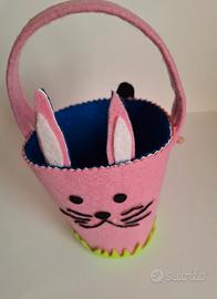 2)Porta uovo di Pasqua in cartone rivestito in feltro rosa e interno blu