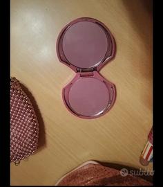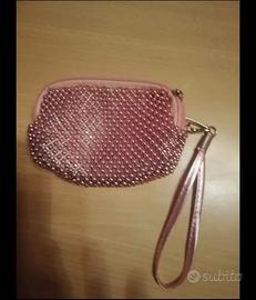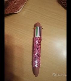 Set 4 accessori bimba. Pochette trasparente con chiusura a lampo, specchietto rosa a forma di conchiglia, penna con tanti colori e portamonete/borsettina rosa lamé. Spedisco
