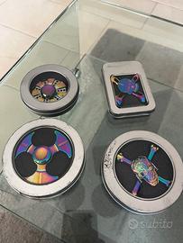 Set completo di 4 fidget spinner in metallo con finitura arcobaleno (effetto titanio iridescente), ognuno nella sua scatola metallica originale. ✨ I 4 modelli inclusi: • 🔵 Spinner a 6 pale con fori dadi • ⚔️ Skull & Crossbones stilizzato (scatola rettangolare) • 🌀 Spinner a 3 lame tipo shuriken • 💀 Skull & Crossbones dettagliato 📦 Tutti in ottime condizioni, completi di scatola.