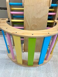 Set arrampicata 4 in 1 Triangolo di pikler richiudibile e regolabile in apertura con viti per fermare la posizione Scivolo da una parte e arrampicata dall’altra Arco da poter utilizzare anche da dondolo con aggiunta di cuscino Qualche segno di pennarello ma perfetto Pagato 100€ su Amazon RITIRO A MANO IN PROVINCIA DI BOLOGNA