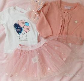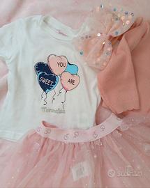 set 4 pezzi neonata 3/6 mesi nuovo tulle compleann