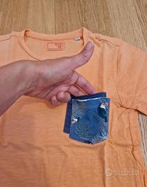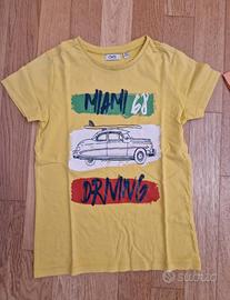 Set 4 t-shirt, una ovs gialla con macchina 7-8 anni (128), una corallo con taschina bk road trip 7-8 anni (128 cm), una bianca Ovs con stampa dinosauro taglia 6-7 anni (122 cm), una sisley verde a righe nere, usate pochissimo, come nuove. (P.s.la verde aveva le maniche lunghe ma se se era macchiata una e le ho tagliate così è diventata una normale t-shirt, non si vede nulla perché la cucitura è all interno della manica e l ho tagliato bene vicino al bordo non si vede davvero nulla vedi ultima foto). [mi potete trovare anche sul V ... li ho molto altro... sono silvia43210 ...venite a sbirciare nel mio armadio😉]