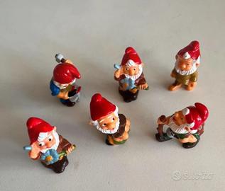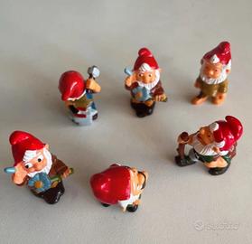 kinder Bellissimo set di 6 statuette gnomi/nani vintage in miniatura.
