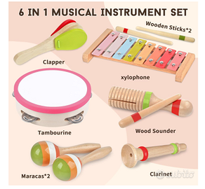 Scopri il divertimento della musica con questo set di strumenti musicali 6 in 1 per bambini! Perfetto per bambini a partire da 1 anno, il set include xilofono, maracas, pandereta e altri strumenti per stimolare la creatività e la curiosità musicale. NUOVO CON SCATOLA E ACCESSORI.