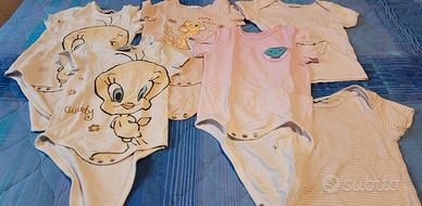 Set 6 pezzi: 5 body (misti Disney, Looney Tunes e Fagottino) maniche corte più una maglietta intima tutti per bimbo/a 24-30 mesi, 92 cm.