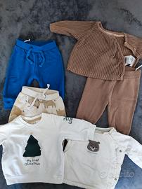 Vendo 8pz taglia 68. 2x completi maglietta e pantaloncino, 2 paia di pantaloni, 1 maglietta e una tuta invernale leopardata.