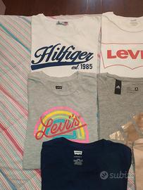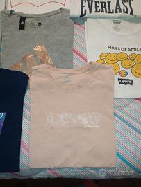 Set 8 T-shirt bambina 14 anni 3 t-shirt Levis 14/16 anni 3 t-shirt Levis Adidas XS (QUELLA ROSA LEVIS IN REGALO PERCHÉ HA UN PICCOLO BUCHINO VEDERE FOTO) 1 t-shirt Tommy Hilfiger M ma veste piccolo e stretto 1 t-shirt corta everlast (versione corta in vita)