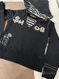 - Felpa con cappuccio nera con stampe e dettagli brand Monella Vagabonda