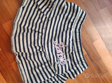 set abbigliamento taglia 5/6 anni composto da un pigiama du pareil au meme, un pantalone pesante abbinato a lupetto collo alto tema unicorno, due jeans due t shirt m lunghe e 4 gonne di cui una di jeans OVS, una tulle di blu Kids, una scacco blu lisa rose e una di Barbie, il tutto meno di due euro a pezzo. ritiro Roma Marconi San paolo