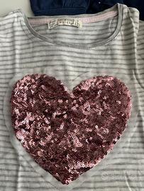 - Maglia a maniche lunghe a righe con cuore glitterato.