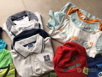 Vendesi set di abbigliamento estivo per bimbo 12 mesi composto da oltre 30 pezzi, molti utilizzati pochissimo. Include: