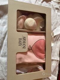 Copertina, scarpine, bavaglino e pupazzetto Armani Baby. Completo di scatola ed etichetta. Perfetto per regalo nascita