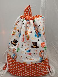 Set Coordinato composto da una sacca foderata 36x44 cm, una tovaglietta e un tovagliolo/salvietta.