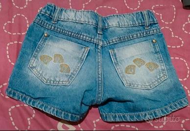 Bellissimo completino per bambina di 8 anni, composto da una maglietta bianca con stampa di palma e scritta "Little Coco Paradise", marca Okaidi e pantaloncini corti in jeans, marca Barbie.