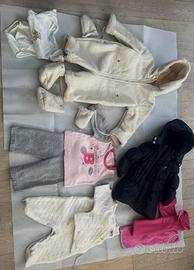 Set bambini 9/12 mesi 1 piumino Zara blu da bambina 1 tuta in ecomontone bianca con guanti e scarpetta, 3 completi.