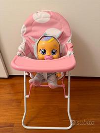 Seggiolone richiudibile per bambole, rosa e bianco;