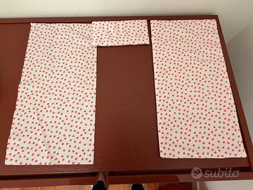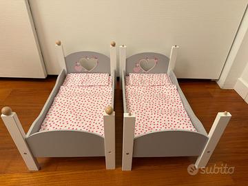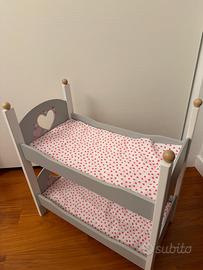 Compreso materassino, cuscino e lenzuolino superiore, bianchi con cuori rosa.