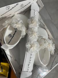 Bellissimo set battesimo scarpine e fascia capelli neonata Nazareno Gabrielli realizzate in Raso e Tulle (Codice Prodotto: NG1906)