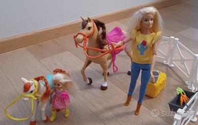 Vendo set gioco comprendente Rnch di Barbie e Chelsea, Ken Malibu 61, Barbie unicorno e altri accessori. No collezionisti. In vendita tutto quanto compreso in foto.