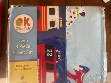 Nuovo! SET BIANCHERIA DA LETTO 3PZ BAMBINI OLIVE KIDS "HEROES" LENZUOLA da sotto con angoli (99 x 191cm), da sopra (168 x 244cm) e una federa (51 x 76cm) CAMION DEI POMPIERI