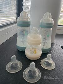 Set 3 biberom Mam + 3 tettarelle di diverse misure.