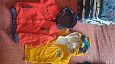 set bimbo 5 anni varie marche, composto da 2 pantaloni, 2 pullover, 3 magliette collo alto, 8 magliette manica lunga e 2 felpe (quella rossa ha una toppa sul retro, vedi foto).
