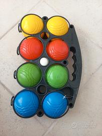 Set di bocce colorate per il tempo libero. - 8 palle di colore giallo, rosso, verde e blu. - Custodia in plastica nera con manico.