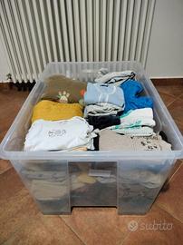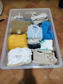 Body e vestitini per neonato in stagioni primavera ed estate. Se interessati come vedete dalla seconda foto ho anche tutto il resto dei vestiti (incluso giacchettine, costumi da bagno, cappottino invernale etc.) per i successivi mesi. 0-24 mesi. Se prendete solo i body (prima foto) 5 euro. Se volete tutto 50 Euro o prezzo trattabile. Mi fa piacere darli a qualcuno che li possa usare.
