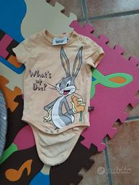 Set composto da due T-shirt body mezza manica neonati/bambini 3-6 mesi (68cm). Indossati pochissimo. Marcato Looney Tunes raffigurante Bug's bunny