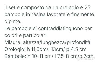 Set completo di 26 pezzi totali(1 orologio+25 bambole)nuove,in resina lavorate e finemente dipinte.