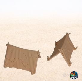 Set campeggio fantasy in PLA stampato in 3D ad alto dettaglio, perfetto per giochi di ruolo, wargame o diorami. Compatibile con miniature 28–32 mm e altri scenari tabletop.