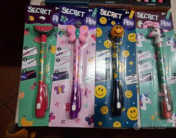 set cancelleria: 3 confezioni, ognuna contiene 4 penne cancellabili 4 secret pen tutto a 12€
