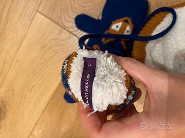 In perfette condizioni, usati poco! Molto caldi, con imbottitura bianca effetto pecora morbidissimo! Taglie in foto, comunque veste dai 3 ai 6 anni direi. Manopole più piccole rispetto al cappello
