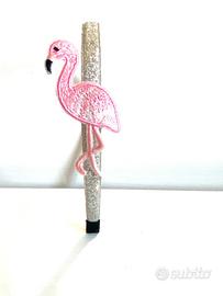 2) Cerchietto glitterato color argento con fenicottero