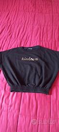 Una giacca con decorazioni sulla quale non ci sono cartellini dovrebbe corrispondere a 11- 12 anni. Una felpa nera con parti lucide 11-12 anni. Una felpa nera corta marca I Do corrisponde a 164 cm. Ottimo stato.