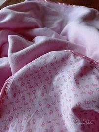 Creo a macchina copertina e bavaglino in base alle tue richieste (colore, tipologia di tessuto, misure della copertina...), ideale per essere regalato. La copertina è in cotone e caldo pile, il bavaglino è ricamato a punto croce con retro in tessuto ipoallergenico. Scrivimi per informazioni, questa che vedi è solo una delle varianti che posso comporre. I tempi di lavorazione sono di circa 3 giorni dalla data di acquisto, poi spedirò il pacchetto.